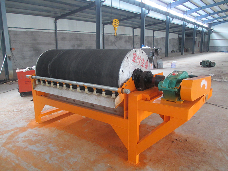 是當(dāng)?shù)V漿進(jìn)入磁場(chǎng)區(qū)時(shí),其中強(qiáng)磁性礦物被吸附在圓筒表面,弱磁性和非磁性礦物被甩掉排出,而吸附在圓筒表面上的強(qiáng)磁性礦物隨圓筒旋轉(zhuǎn)、被帶出磁場(chǎng)區(qū)、用沖洗水沖入精礦槽中,完成分選作業(yè)。